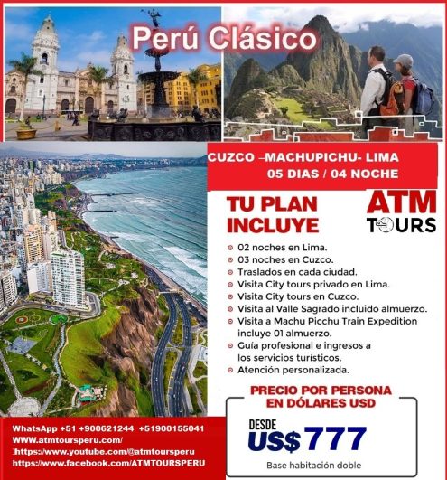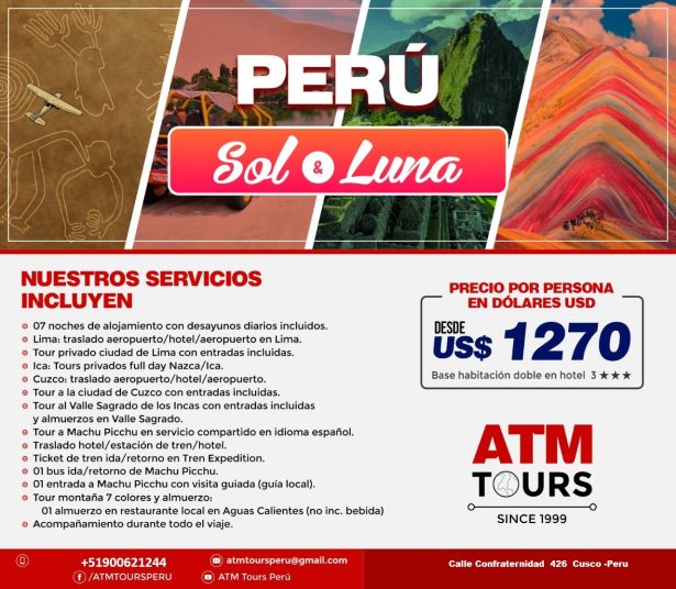 Somos Operador de turismo Receptivo de Peru. Estamos Ubicados en la Ciuda de Lima y Cusco. 20 años en el mercado.